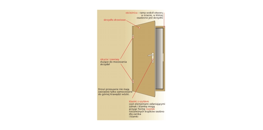 • Okucia - elementy wyposażenia drzwi takie jak: