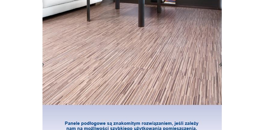 Panele podłogowe są znakomitym rozwiązaniem, jeśli zależy nam na możliwości szybkiego użytkowania pomieszczenia. Montaż jest bardzo prosty, a po wykończonej w ten sposób podłodze można chodzić od razu po zakończeniu prac. Wybór kolorów i wzorów jest bardzo bogaty, ale najważniejszy jest prawidłowy montaż.